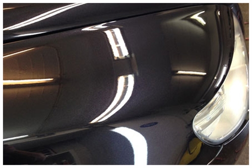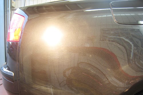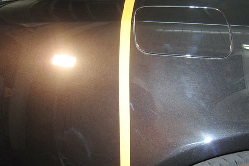 Laufspuren, haarfeine Kratzer, die auch, bei jedem Neuwagen bereits vorhanden sind, reduzieren den Glanz. Dieses ungenaue Lackbild können wir mit einer gekonnten Polier-Technik korrigieren und erreichen sogar ein Lackergebnis, das besser aussieht als bei einem Neuwagen.